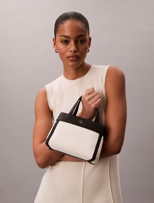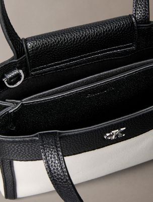 • Calvin Klein faceted monogram hardware on the front
