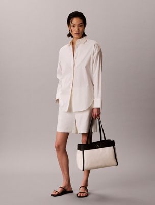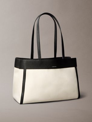 • Calvin Klein faceted monogram hardware on the front