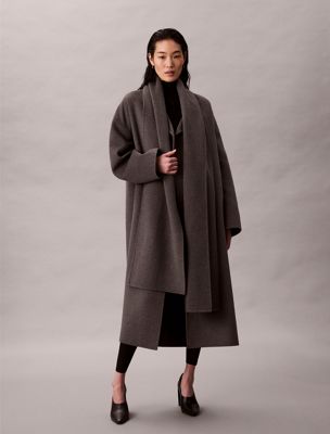 Heathered Wool Scarf Coat
