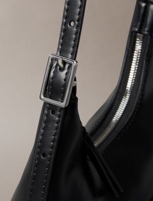 Monogram Logo Emblem Leather Small Shoulder Bag