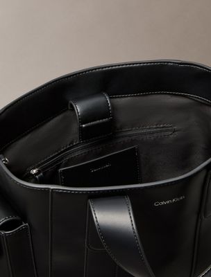 €129.90(inc. VAT)Crafted from smooth faux leather, this structured bag combines elegant design with a thoughtfully optimised interior. Finished with jacquard Calvin Klein webbing for a signature touch.