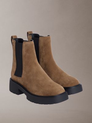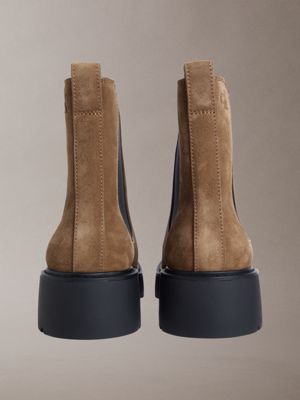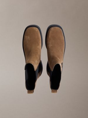 Suede Chunky Square Toe Chelsea Boots